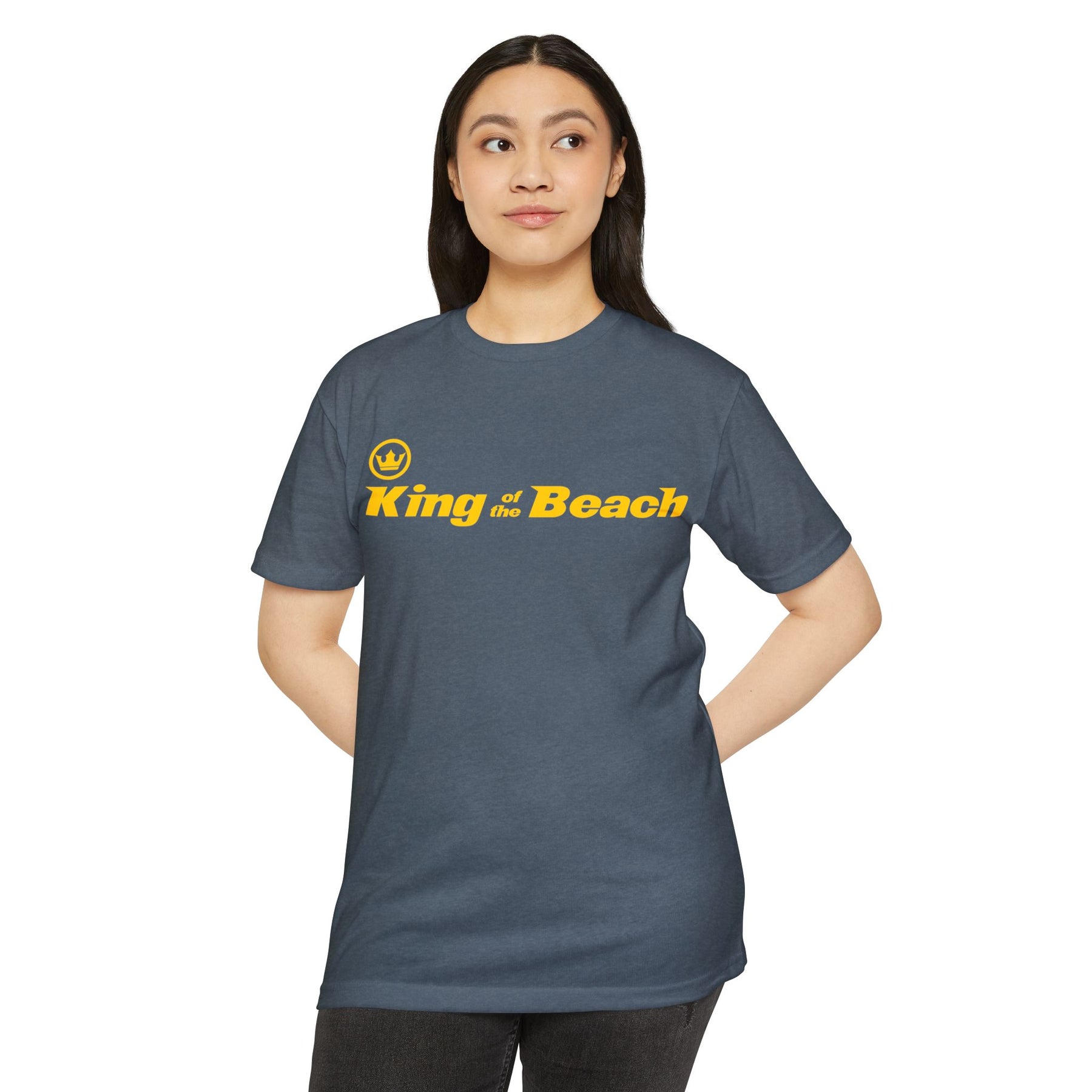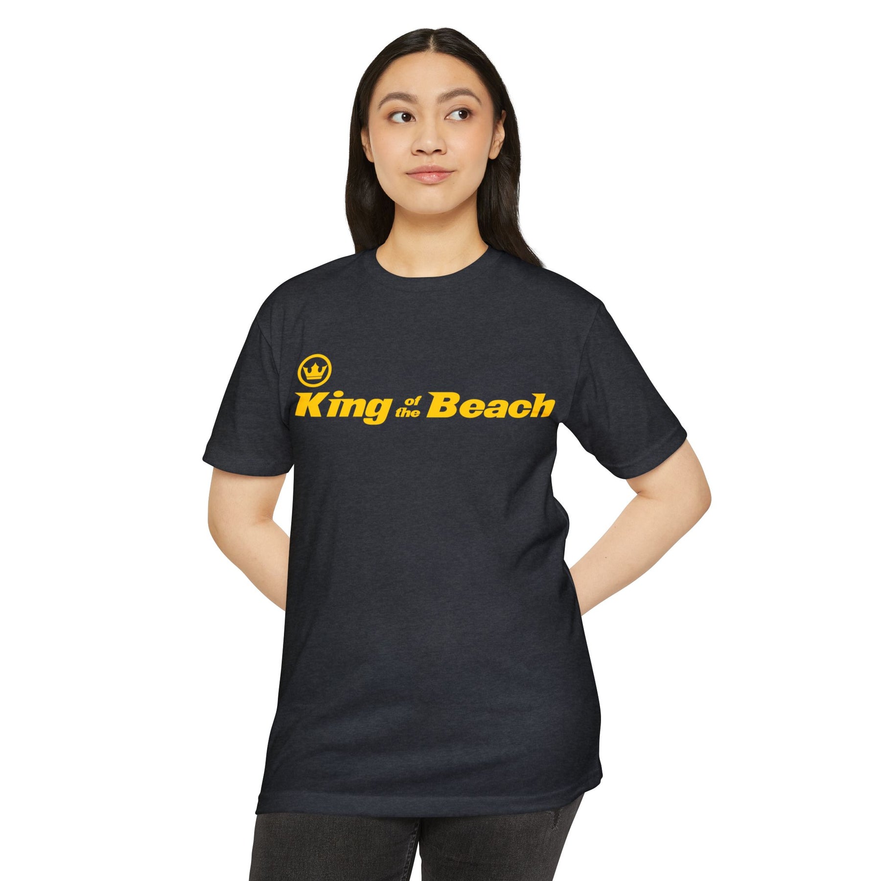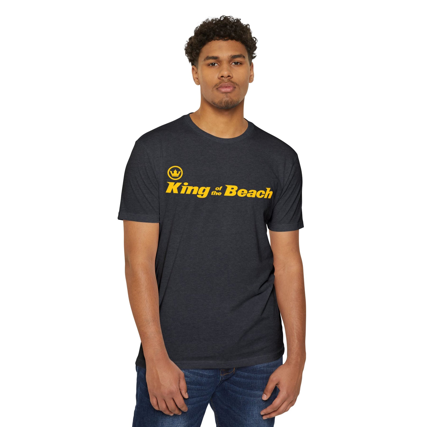Lightweight and laid-back, this classic-fit tee carries a sunny, beachside attitude. The olive canvas and bold golden “King of the Beach” print read like a sunset memory—warm, easy, and a little cheeky. Slip it on for slow afternoons by the boardwalk or for friendly backyard games; the soft, combed-ring spun cotton blend drapes comfortably and moves with you. It settles in like an old favorite: breathable on hot days, smooth against the skin, and durable enough for repeated wear. The straightforward silhouette and ribbed collar keep things simple while the tear-away label and clean interior finish make it itch-free and ready to live in.
