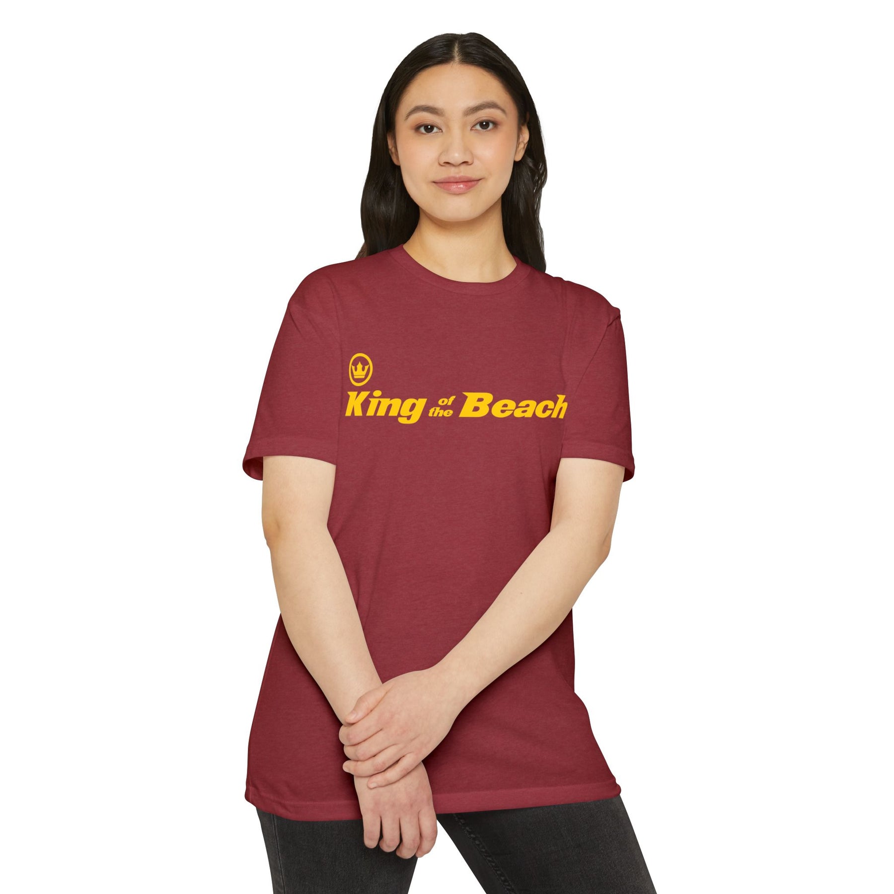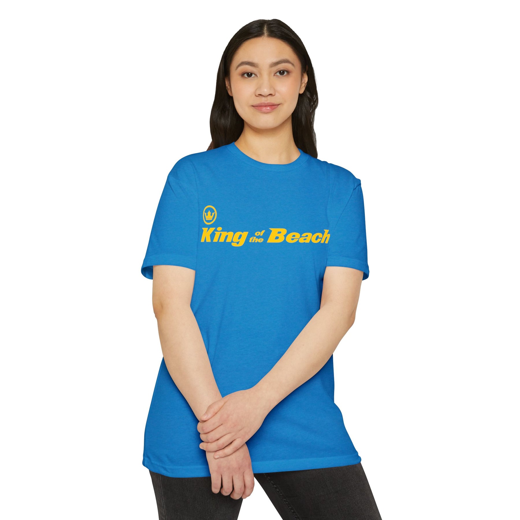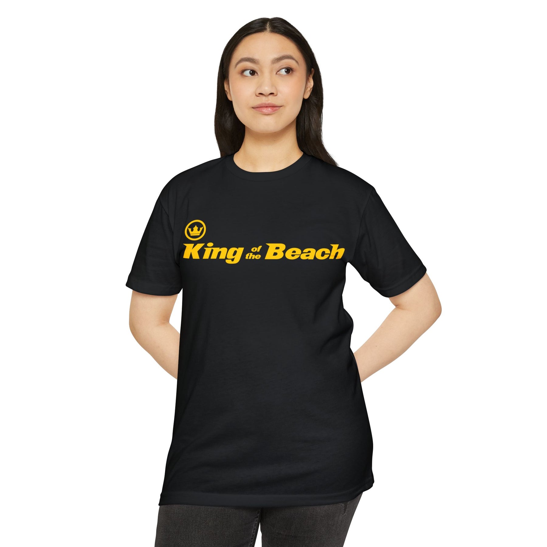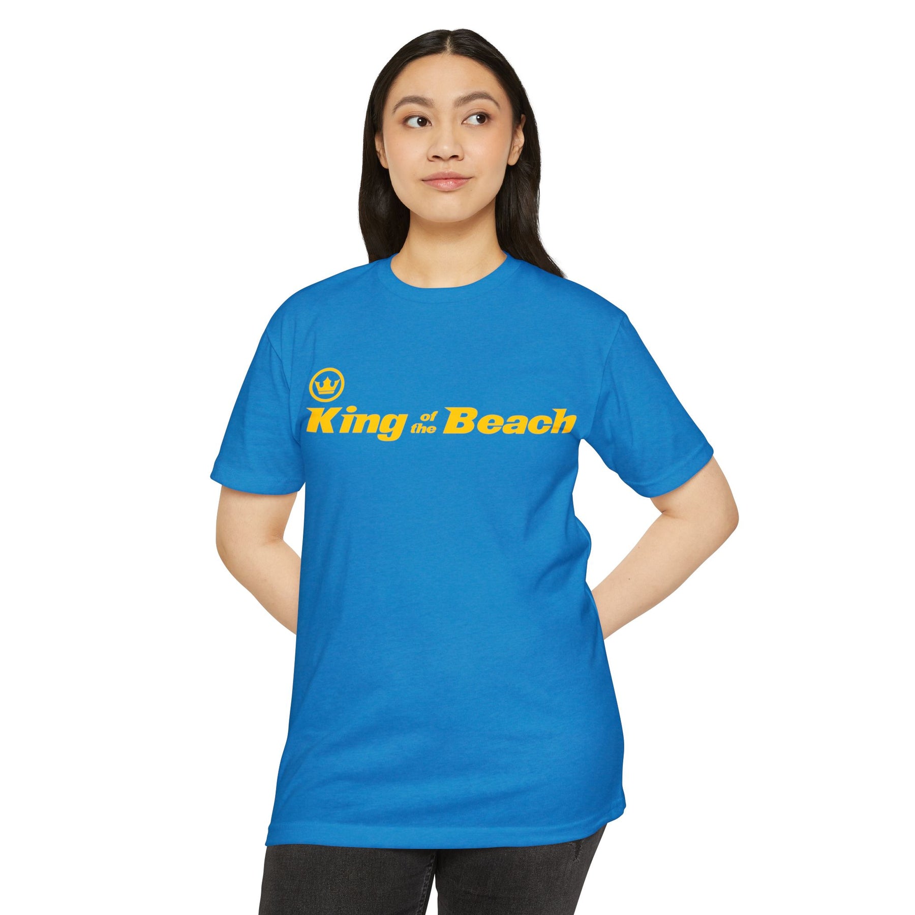 Lightweight and laid-back, this classic-fit tee carries a sunny, beachside attitude. The olive canvas and bold golden “King of the Beach” print read like a sunset memory—warm, easy, and a little cheeky. Slip it on for slow afternoons by the boardwalk or for friendly backyard games; the soft, combed-ring spun cotton blend drapes comfortably and moves with you. It settles in like an old favorite: breathable on hot days, smooth against the skin, and durable enough for repeated wear. The straightforward silhouette and ribbed collar keep things simple while the tear-away label and clean interior finish make it itch-free and ready to live in.