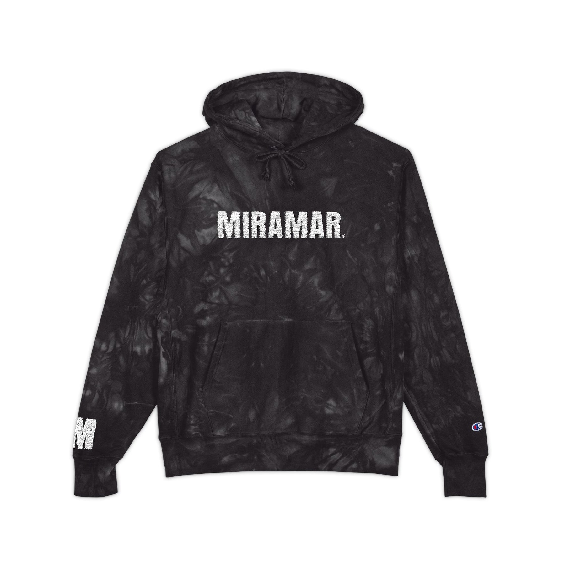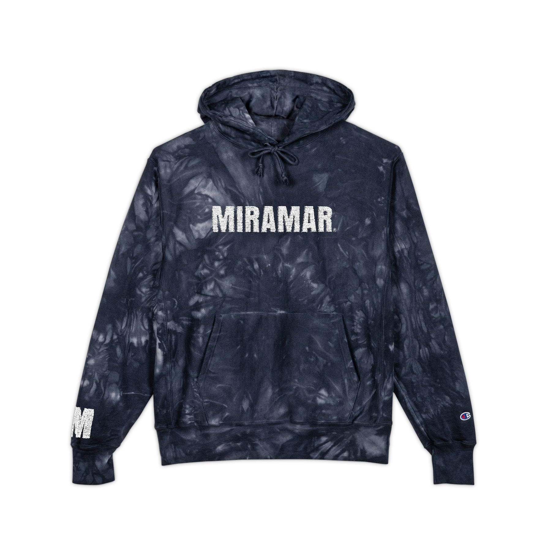 Our MIRAMAR® FLEECE Tie-Dye Embroidered Hoodie. A heavyweight tie-dye hoodie that feels like a worn-in favorite from the first wear. The deep, scrunch-dye pattern creates one-of-a-kind smoky swirls across a sturdy Reverse Weave® build, while the two-ply hood and matching drawcords shelter you from wind and chill. Embroidered accents — the small “C” on the sleeve and woven neck label — add subtle heritage detail. The roomy front pouch pocket keeps hands warm and holds essentials. Wear it to slow down nights, late practices, or weekend hangouts; it layers effortlessly over tees and under coats, and every piece arrives with its own unique dye story.